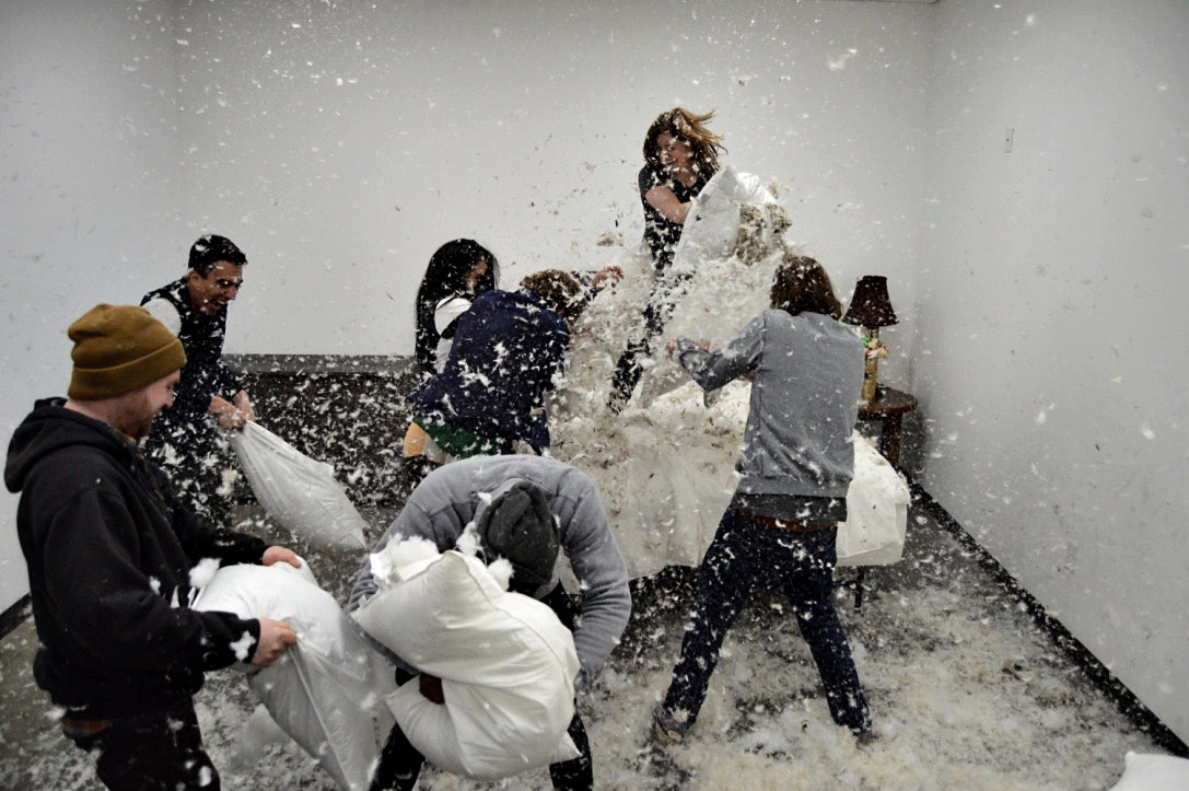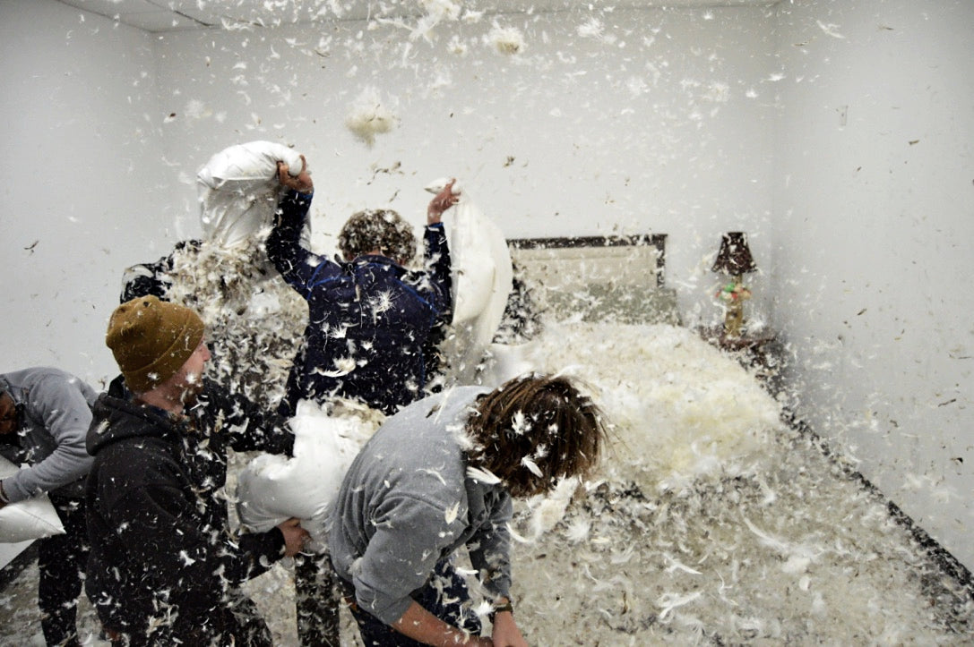 The more the merrier in a pillow fight. We recommend splitting off in teams, including props when possible (such as a bed), and picking a venue that’s big enough for the fun. Make sure you set ground rules, such as avoiding the face and head. You don’t want anyone to be injured as that is sure to put a damper on your pillow fight.