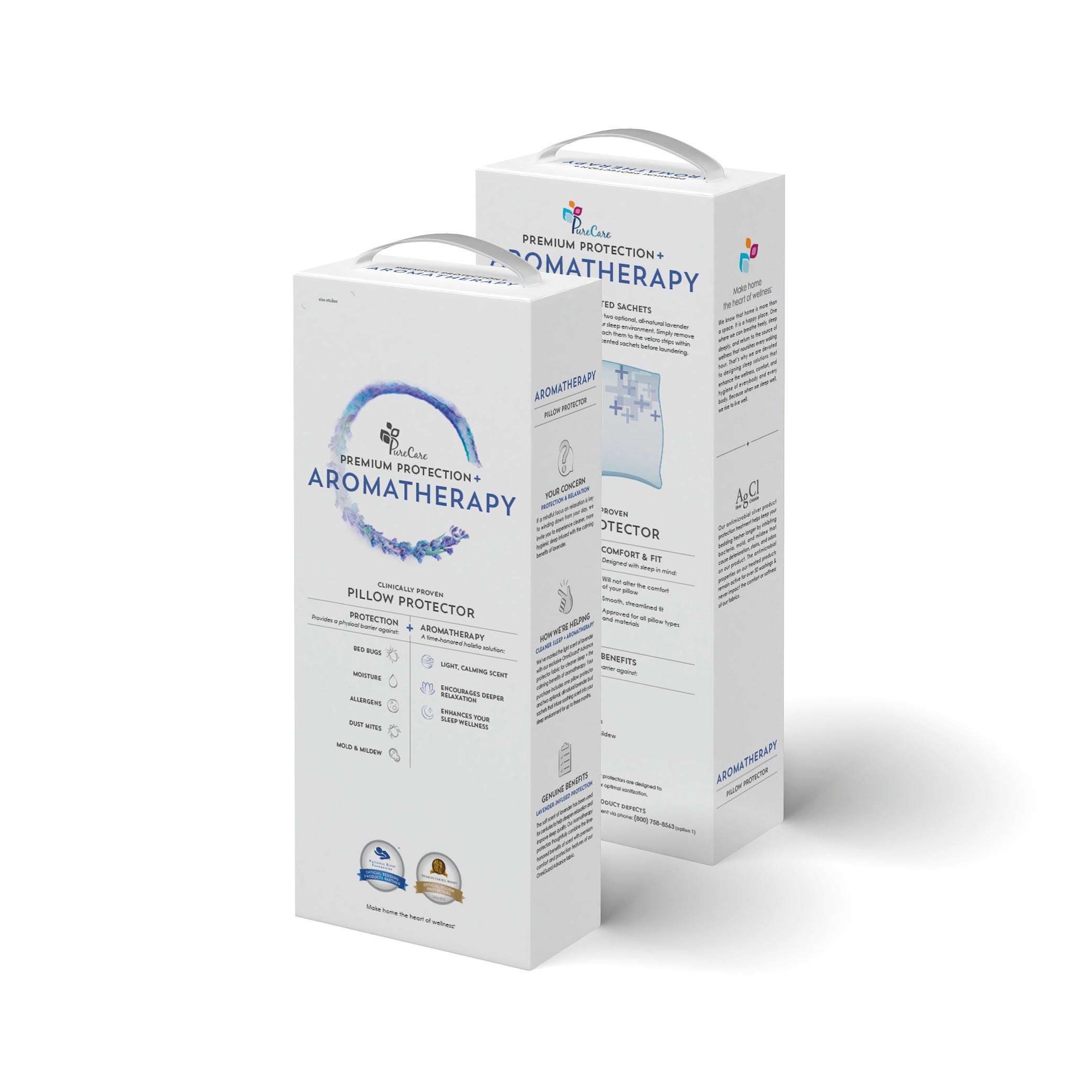 Welcome to the future of tranquil slumber. PureCare's Aromatherapy Pillow Protectors combine our clinically proven protection with the time-honored sleep benefits of Aromatherpy to provide the ultimate relaxation solution for restless sleepers. Our Aromatherapy pillow cover comes with natural lavender sachets that infuse your sleep environment with calming scents, helping to enhance relaxation and encourage sleep.